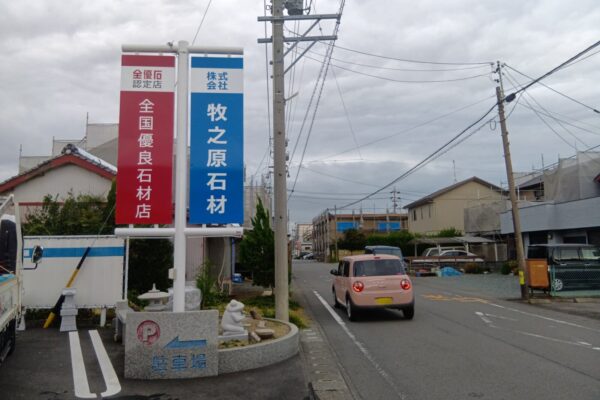 石材店の鉄骨看板を設置いたしました。鉄骨看板は、錆による劣化を防ぐことができ、頑丈で耐久性にも優れています。竜巻の被害に見舞われましたが、最小限のメンテナンスで済みました。また、ポールの塗装もいたしました。メンテナンス作業もお任せください。