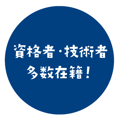 看板点検技師、塗装施工者、電気工事士、高所作業車資格者等、施工部門の有資格者が社内に多数在籍しており、ワンストップで全ての業務を責任を持って遂行いたします。